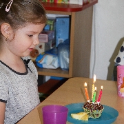 V koupelně se děti učí a fixují si základní hygienické návyky. Každé dítě má pod svojí značkou ručníček, kelímek na vodu, pastu a kartáček na zoubky. Před spinkáním děti odchází do postýlek s čistými zoubky.